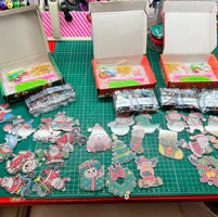 Cada kit viene con el lienzo adhesivo, brillantes de colores, lápiz aplicador, bandeja y cera. ¡Todo lo necesario para crear tu arte navideño!